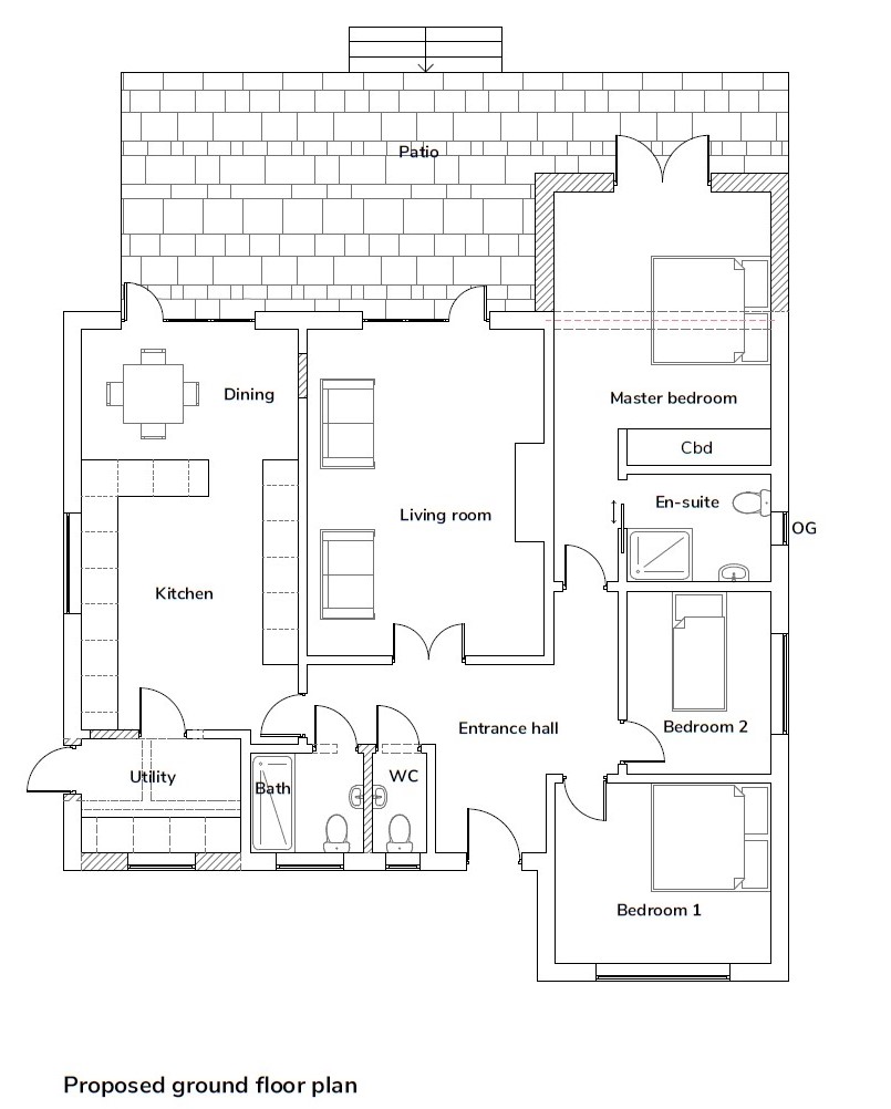 Daniel Powell Studio were asked by our clients to design an extension for this bungalow in Ripon, in order to create an en-suite in the master bedroom.